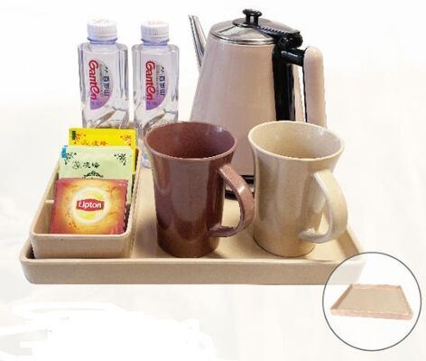 صينية مستلزمات فندقية صديقة للبيئة ، صندوق مناديل ، صندوق شاي ، طبق صابون ، منشفة ، كوب قهوة مع ملعقة وصحنصندوق أدوات نظافة